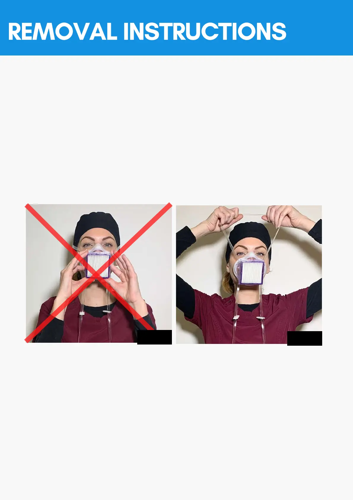 carefully over the head (Fig. 16). Pull the respirator away from the face without