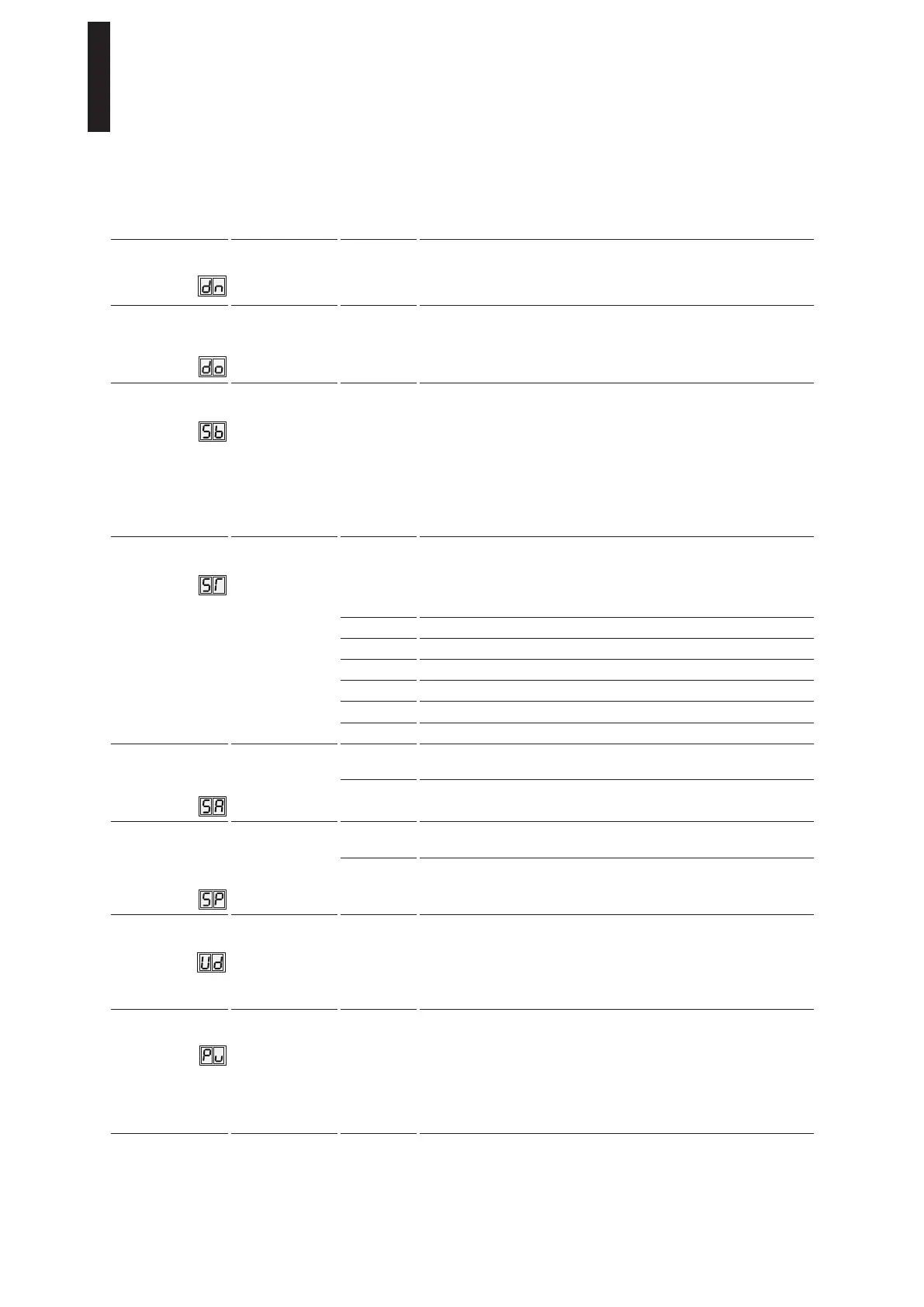 Parameters / Display Value range Unit