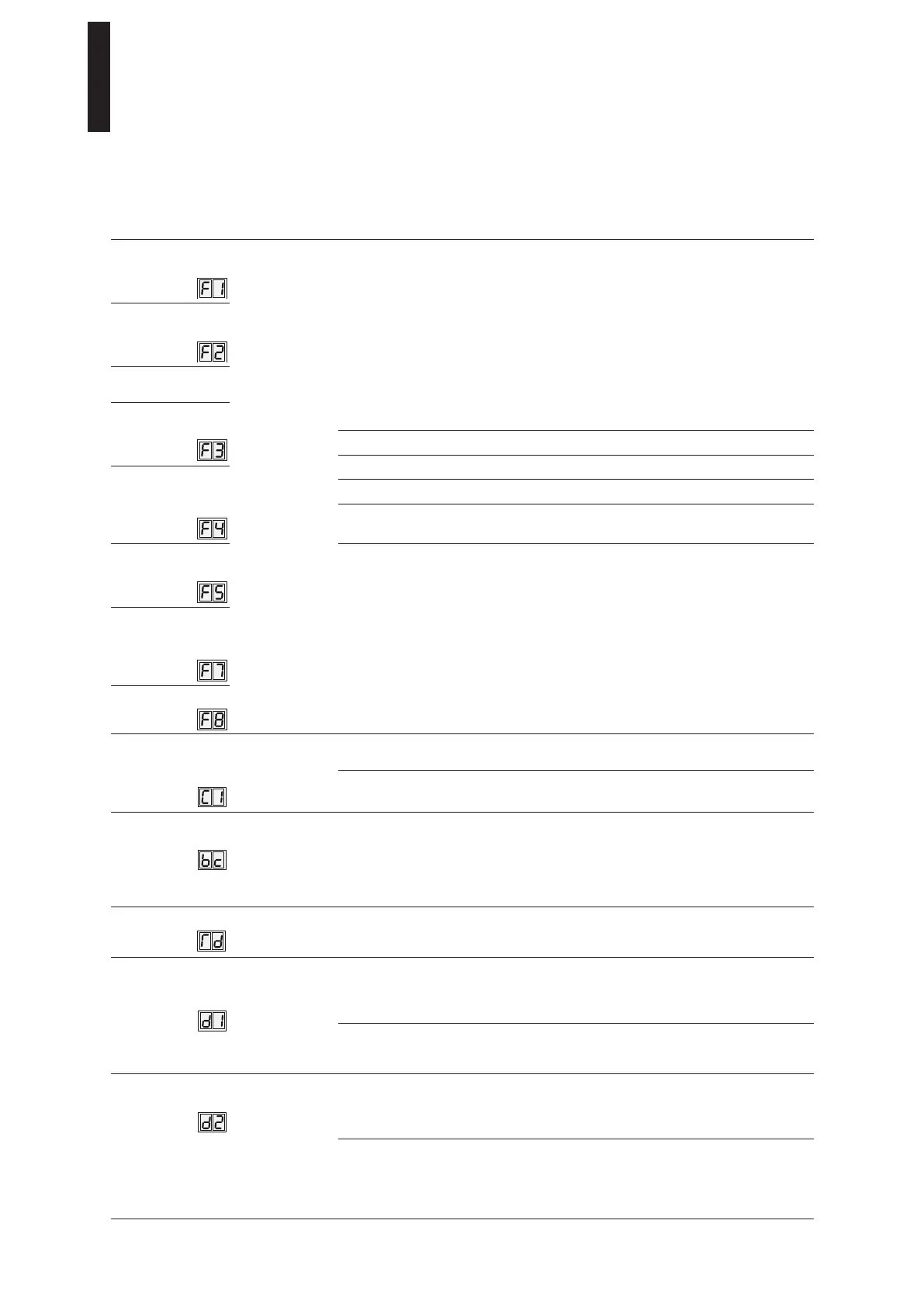 Parameters / Display Value range Unit
