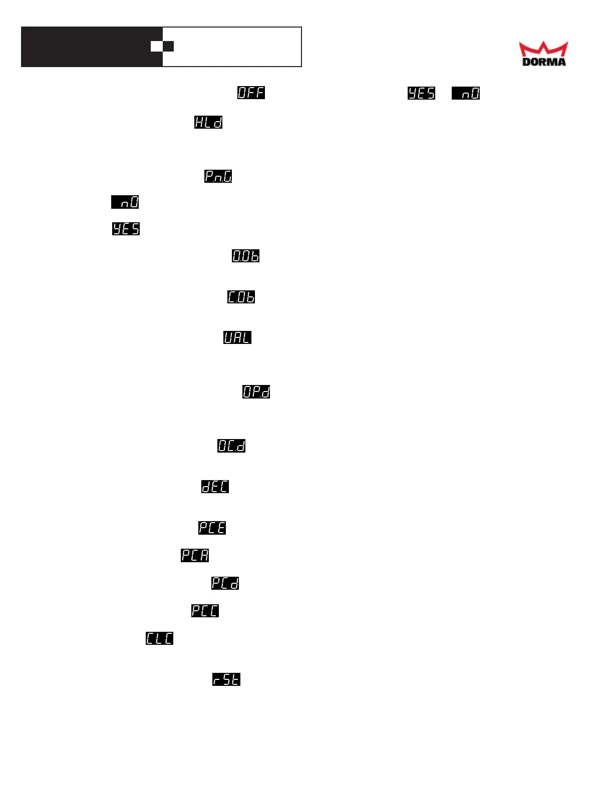 This submenu is used to display and set how long (in seconds) a door stops after it encounters an obstacle or