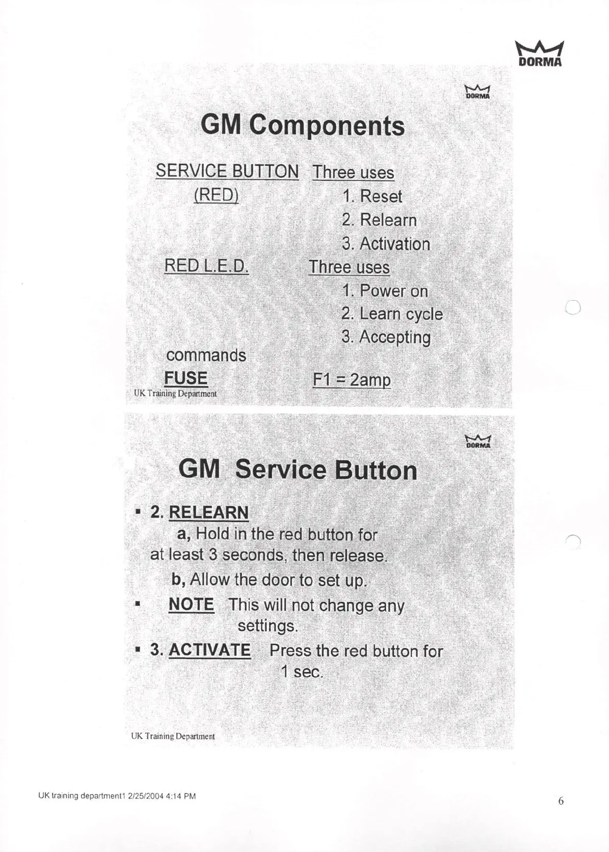 Dorma ES 100 - GM Components; GM Service Button; 2. RELEARN