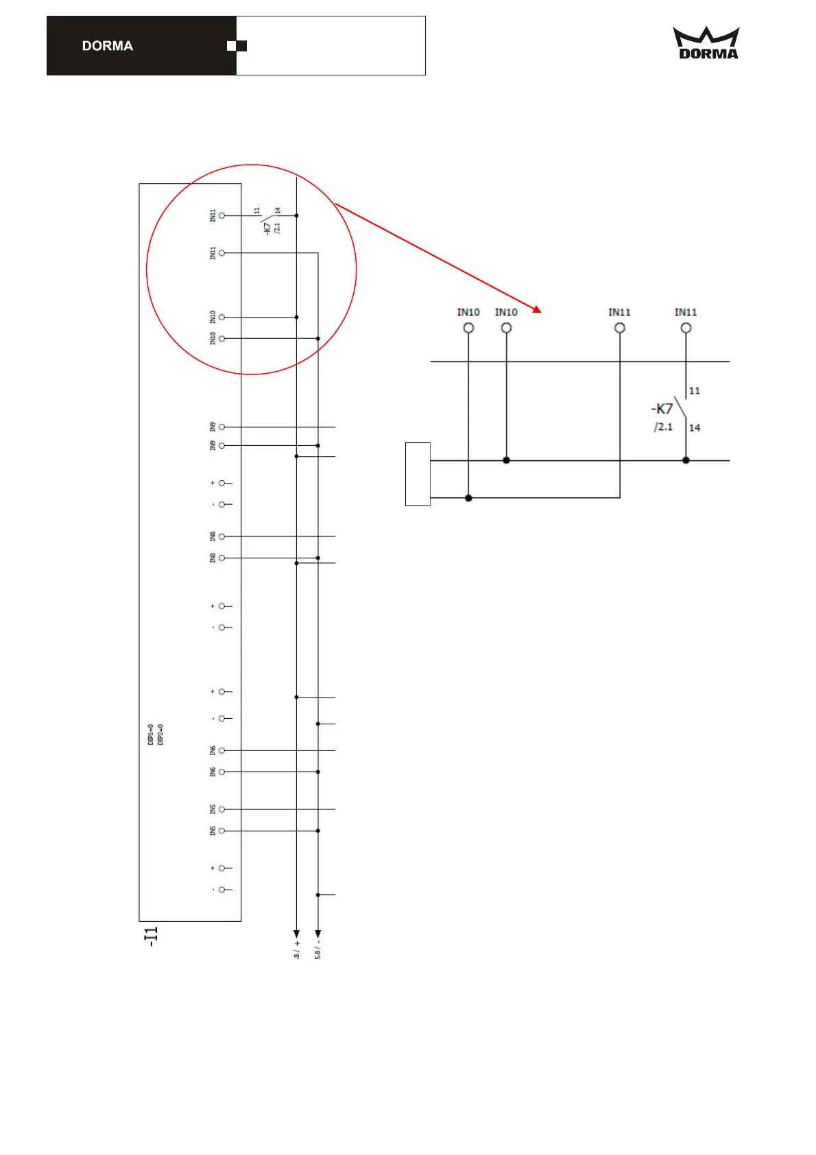 7. Re-wire the inputs in the rotating part „I1“ here IN10+11 as follows: