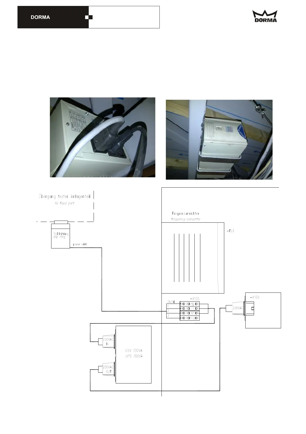 –X103 into the UPS and the other 230VAC adapter cable to be connected between