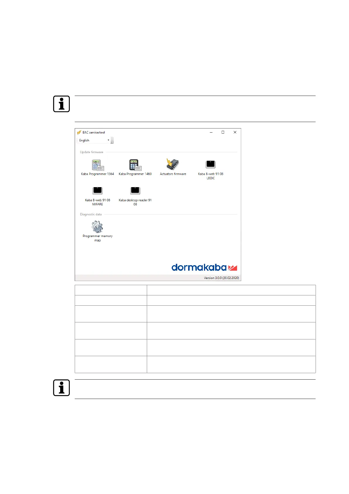 The EAC Service Tool is an auxiliary program for updating firmware data and for diagnoses.