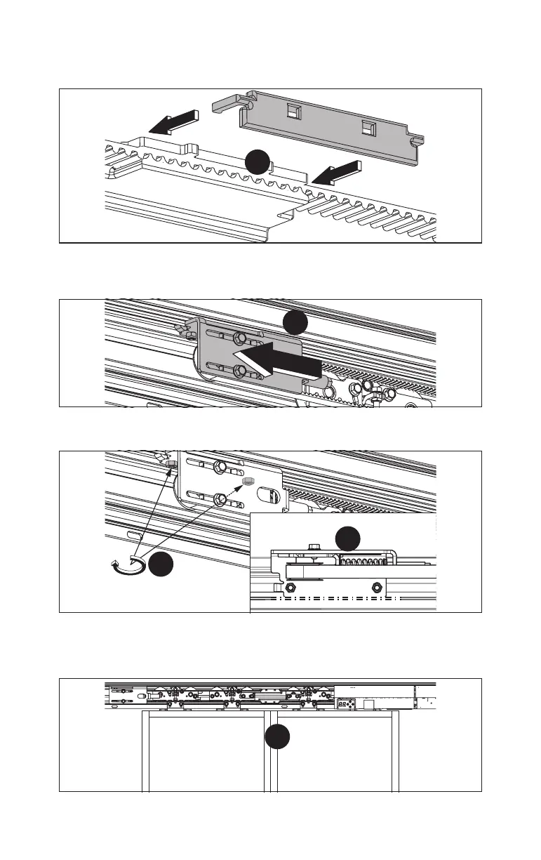 5. Press the tensioning device firmly outward in order to pre-tension the toothed