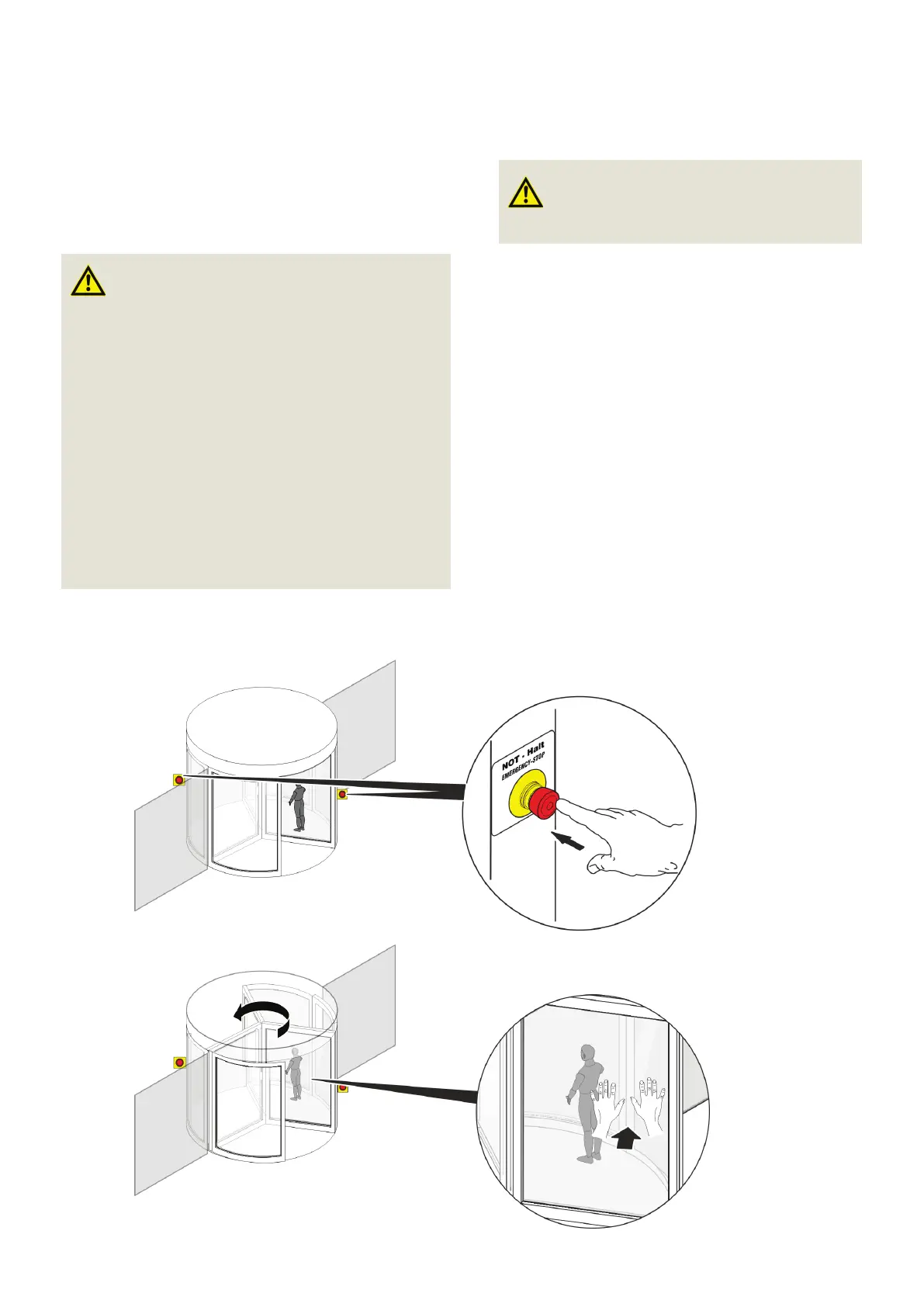 » The revolving door will stop. The drive will be dis-