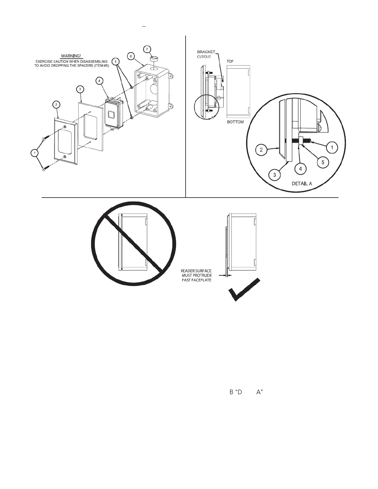 (item #6) and tighten screws making sure the reader face protrudes past the faceplate as shown in