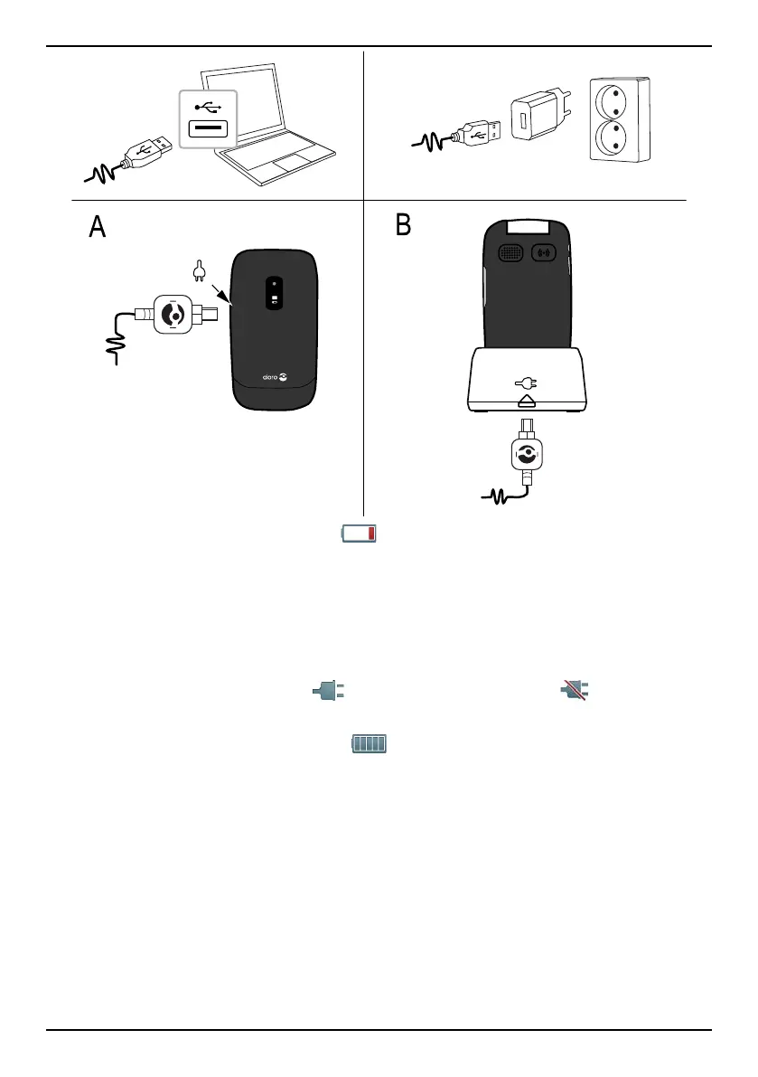 1. Connect the mains adapter to a wall socket and to the charging socket