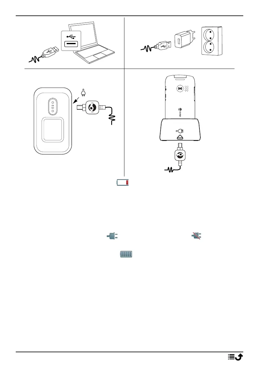 1. Connect the mains adapter to a wall socket and to the charging socket