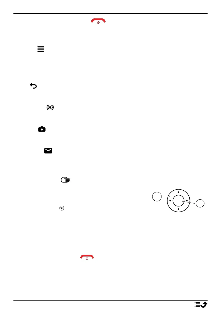 • End calls or return to the start screen.