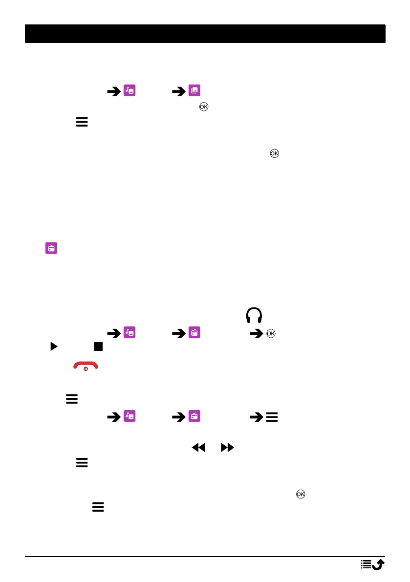 • Channel list to see your saved channels. Press to play channel