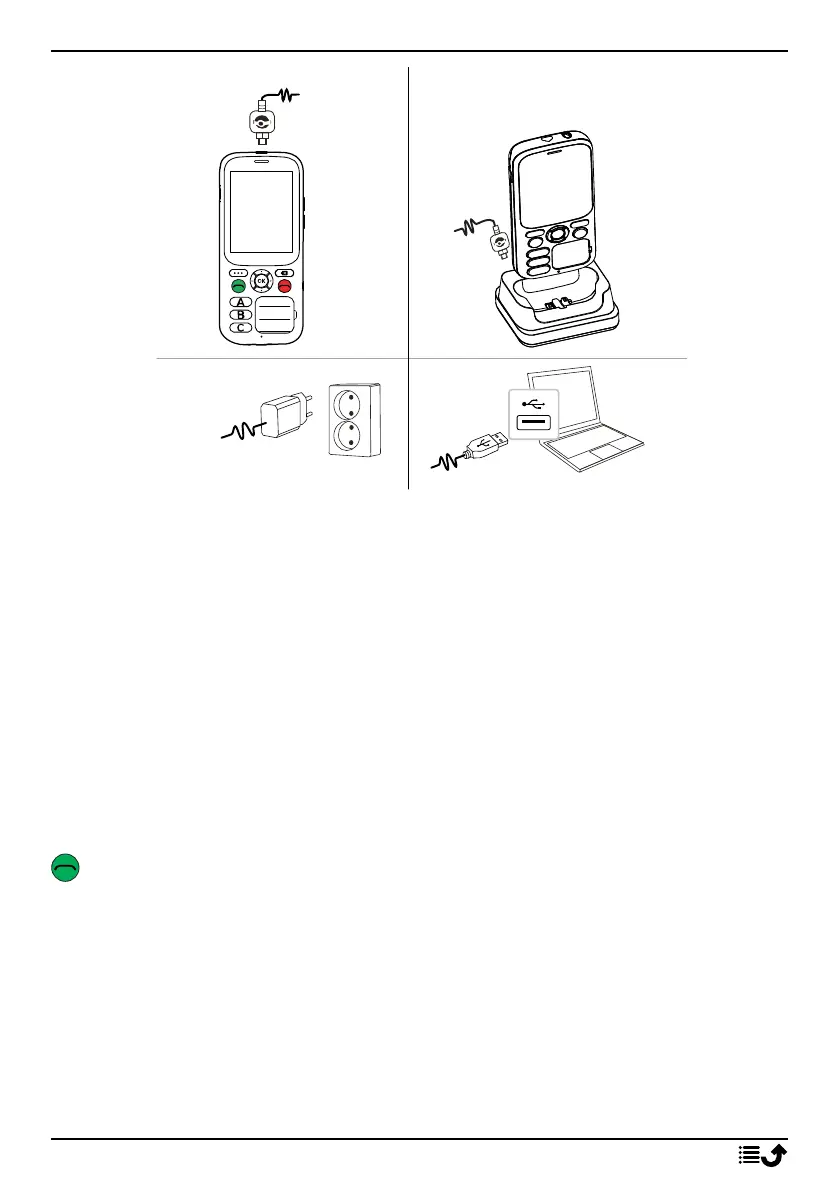 B. You can also charge the phone using the cradle. Connect the small head