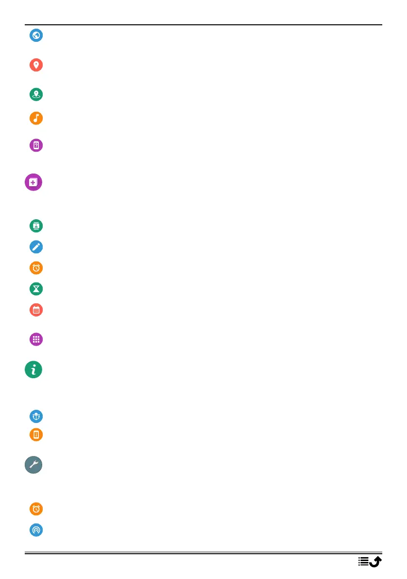 An alarm to set an alarm or reminder, see Alarm, p.66.