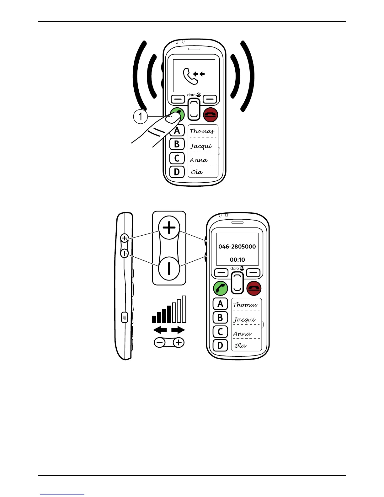 Doro Secure 580 - Answering an Incoming Call; Adjusting Volume Control