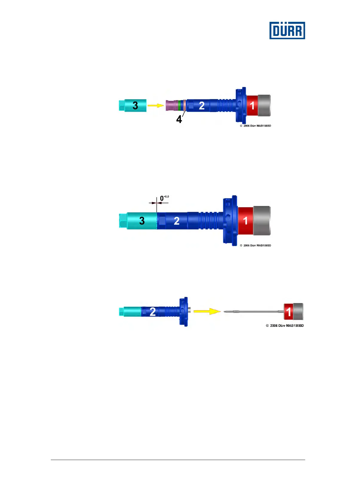 • Tighten nozzle holder with 12 Nm on the paint tube.