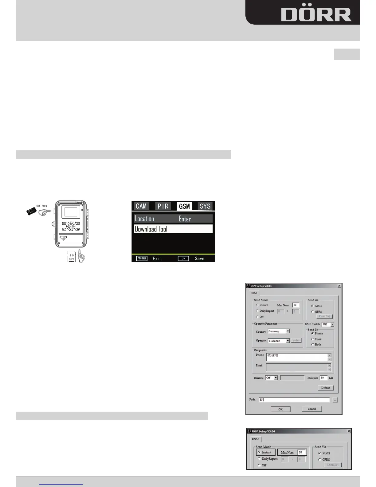 2. Turn power switch to position „SETUP“ and press the „MENU“ button. With the right arrow select „GSM“. With the down arrow go to “Download Tool”,