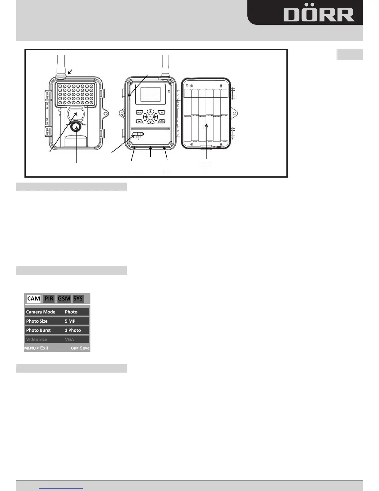 1) En appuyant sur les touches directionnelles et il est possible de choisir les diérents points du menu (CAM, PIR,