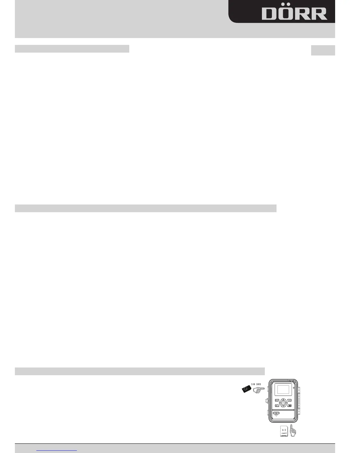 1. Insérer la carte SD (max. 16GB) et la carte SIM (sans mot de passe, Pin) dans la caméra. La carte SIM doit être