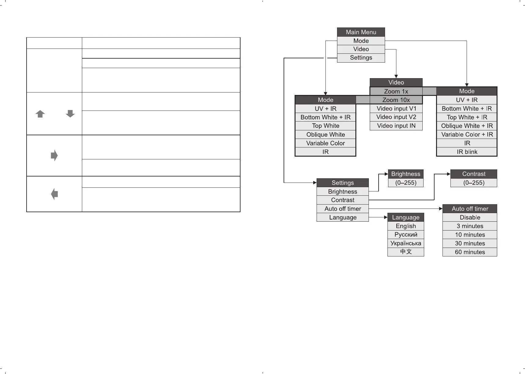 – exit from the menu item without saving of the changed