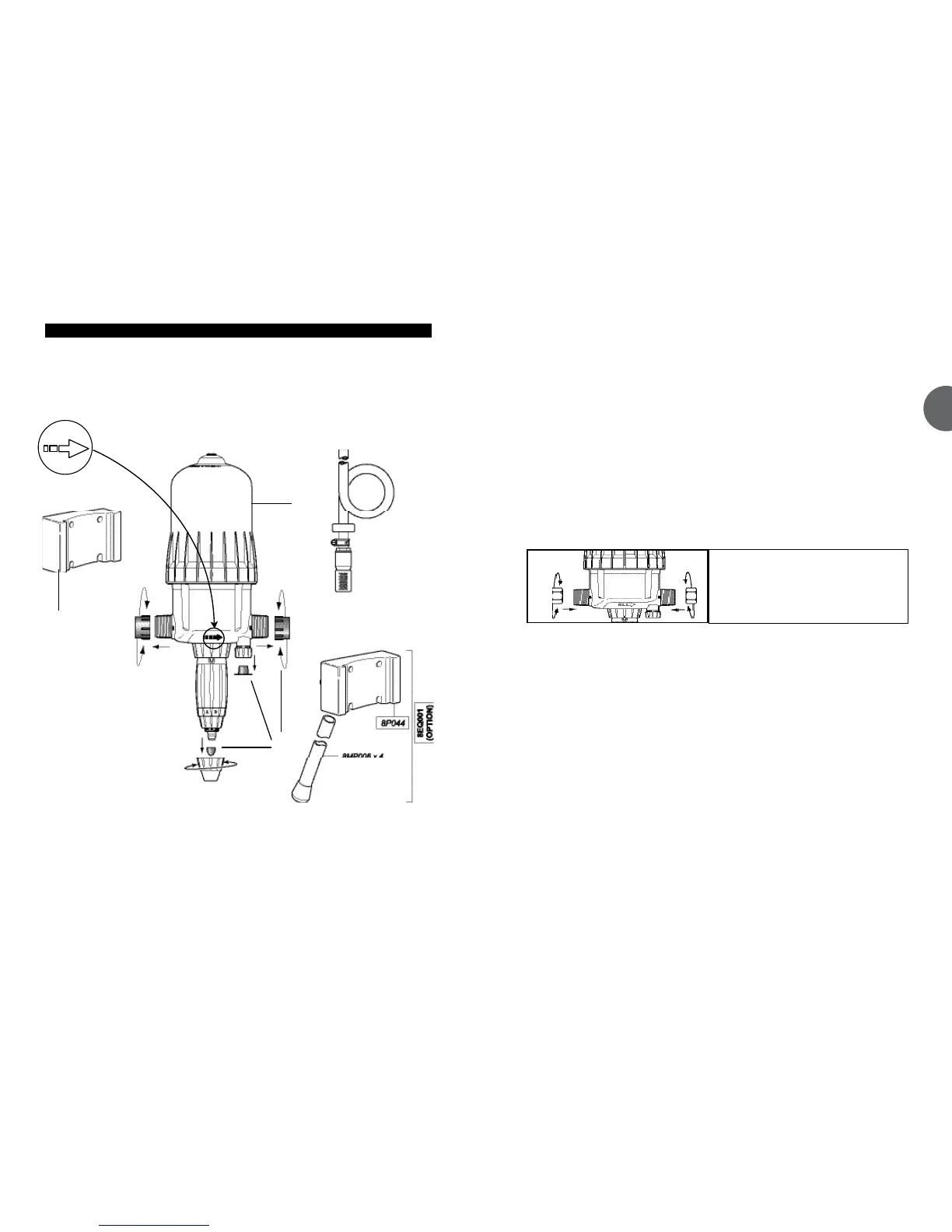 - Slide the Dosatron’s dove-tail fittings (Fig. 1-A) into the wall bracket (Fig. 1-B).