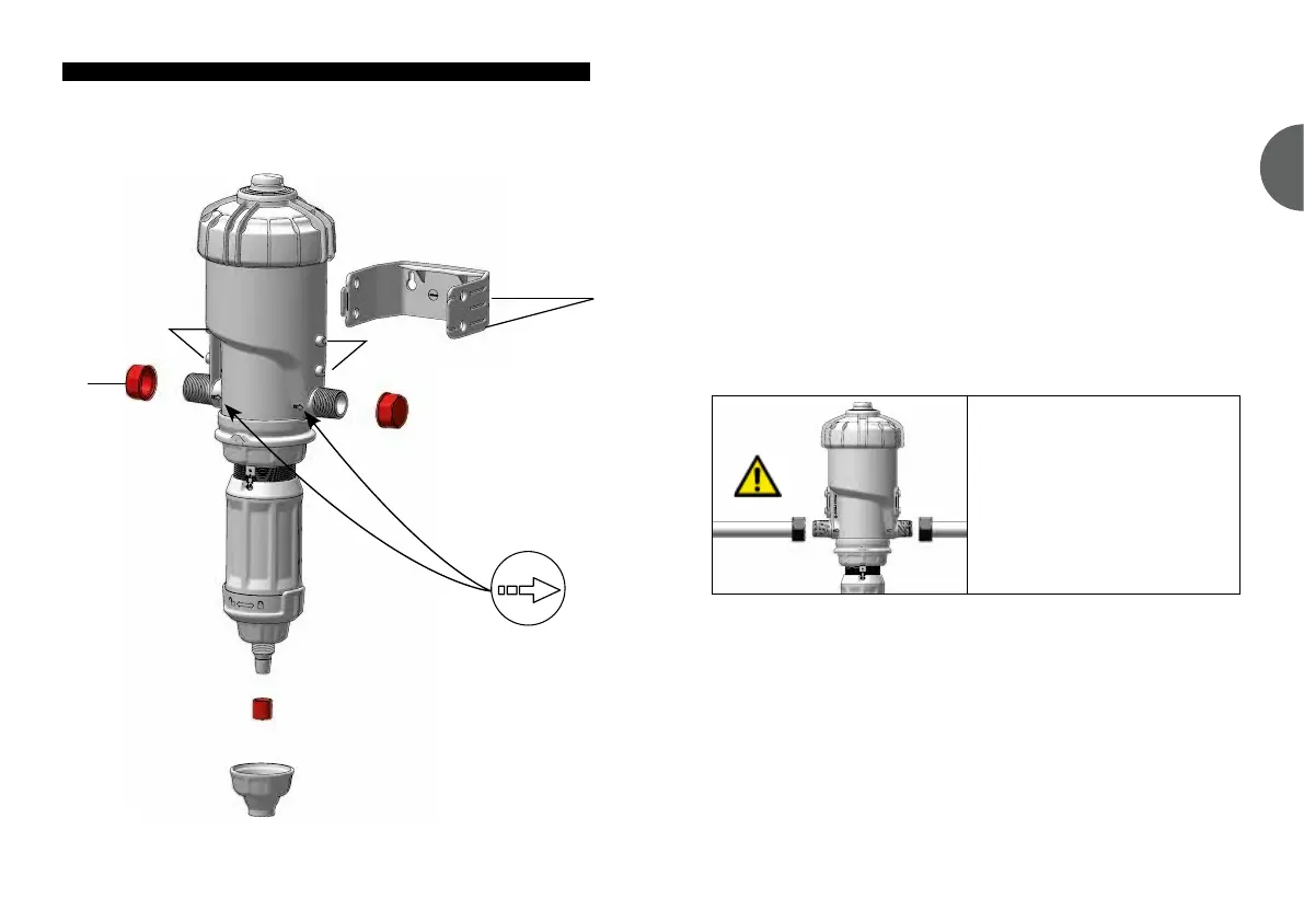 [3/4”]. Make certain that the water flows in the direction of the arrows (water