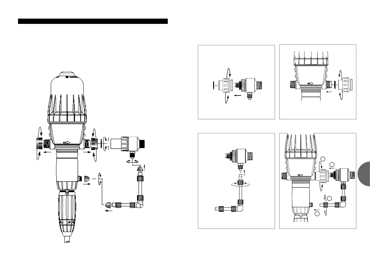 Zdjąć zatyczki ochronne zamykające otwory DOSATRONu i zestawu wtrysku
