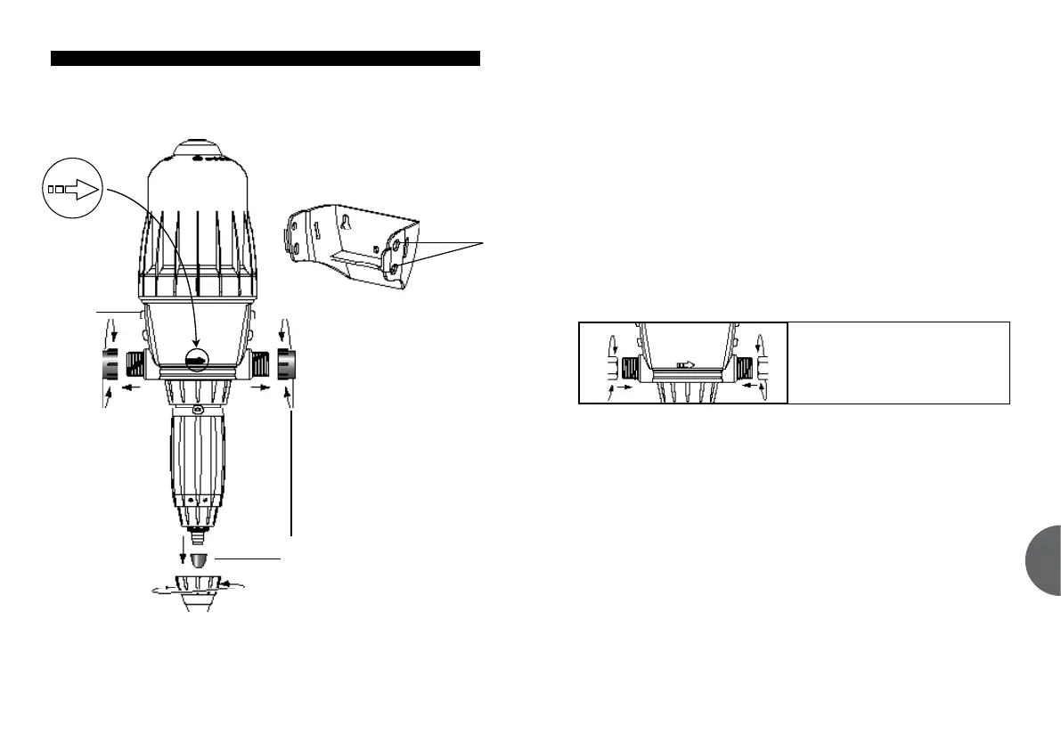 [3/4”]. Certifique-se de que a água corre no sentido das setas que é indicado no