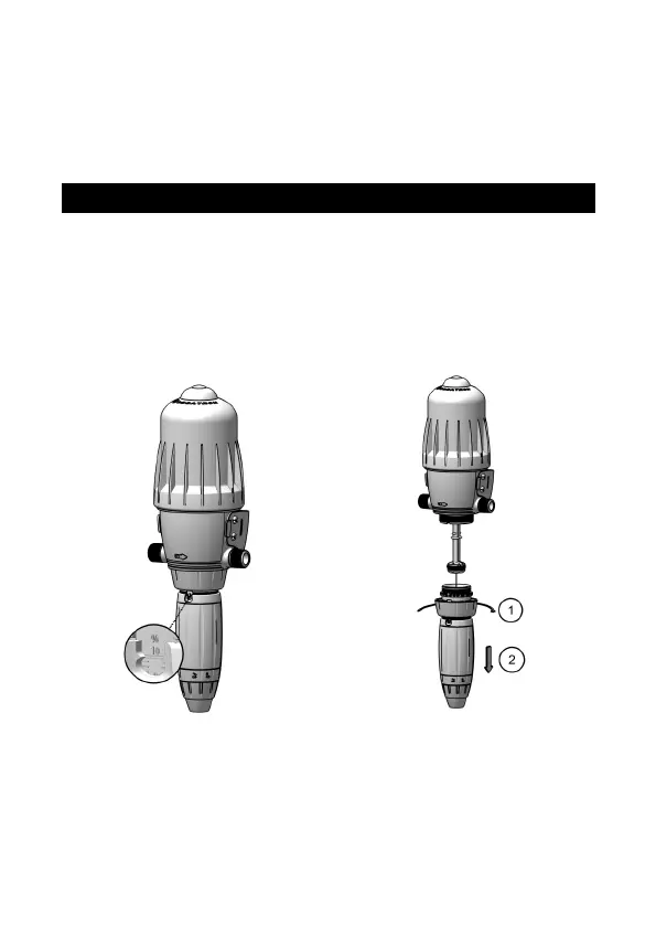 The DOSATRON dosing rate can be adjusted according to two scales: