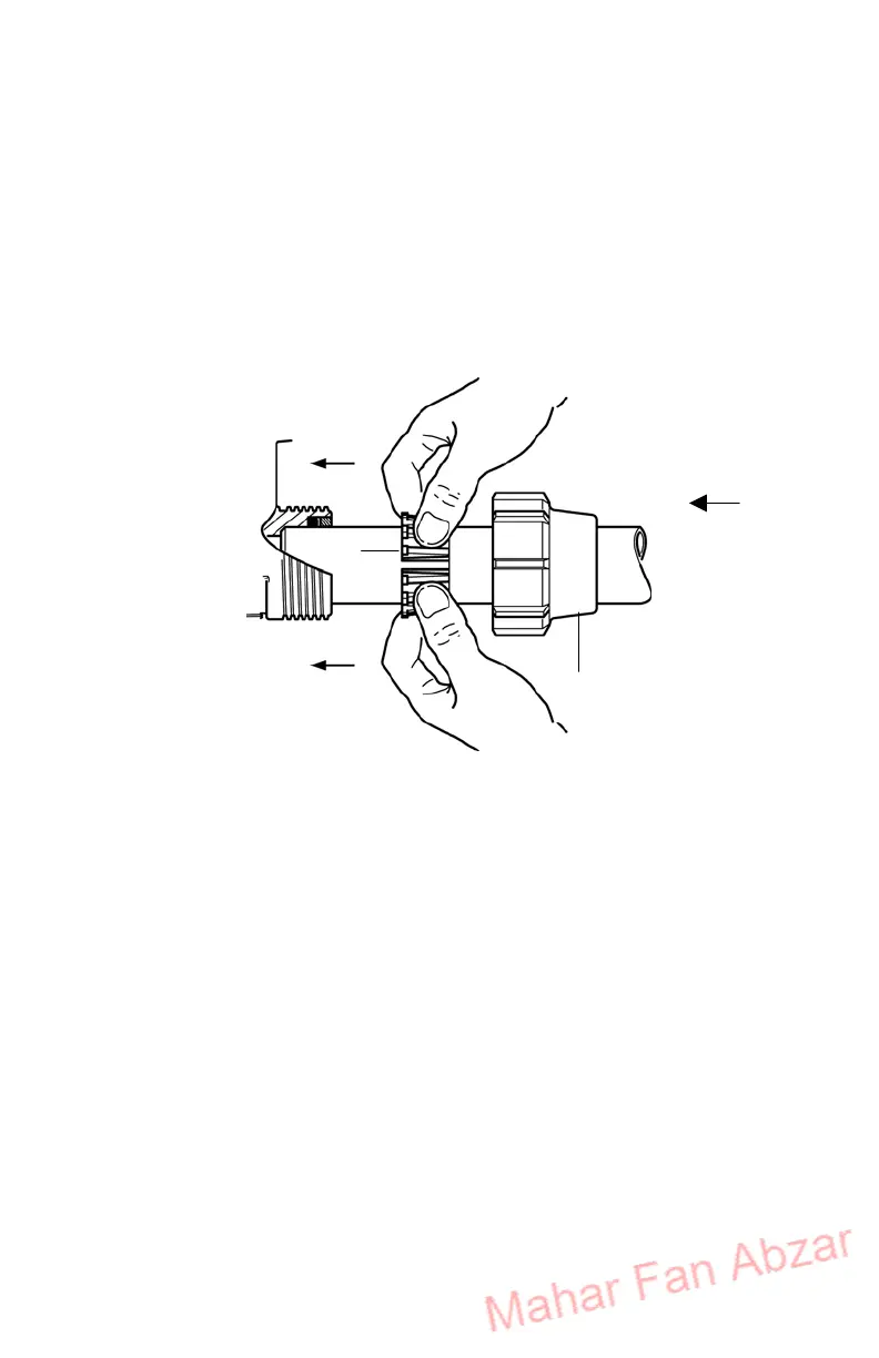 - Push one ferrule (Fig. 2-C) against the inlet and the other against the outlet.