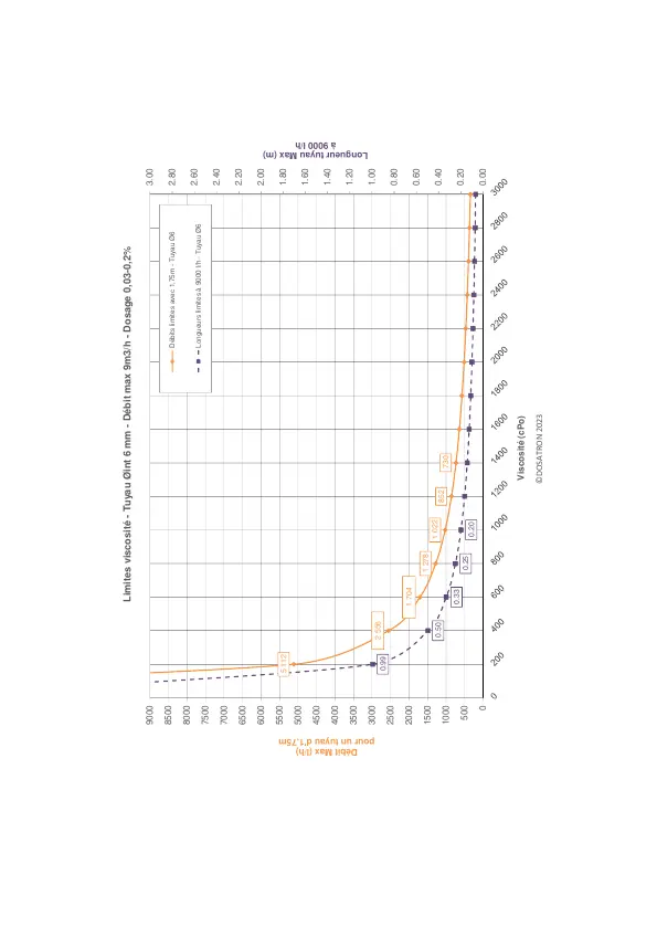 Limites viscosité - Tuyau Øint 6 mm - Débit max 9m3/h - Dosage 0,03-0,2%