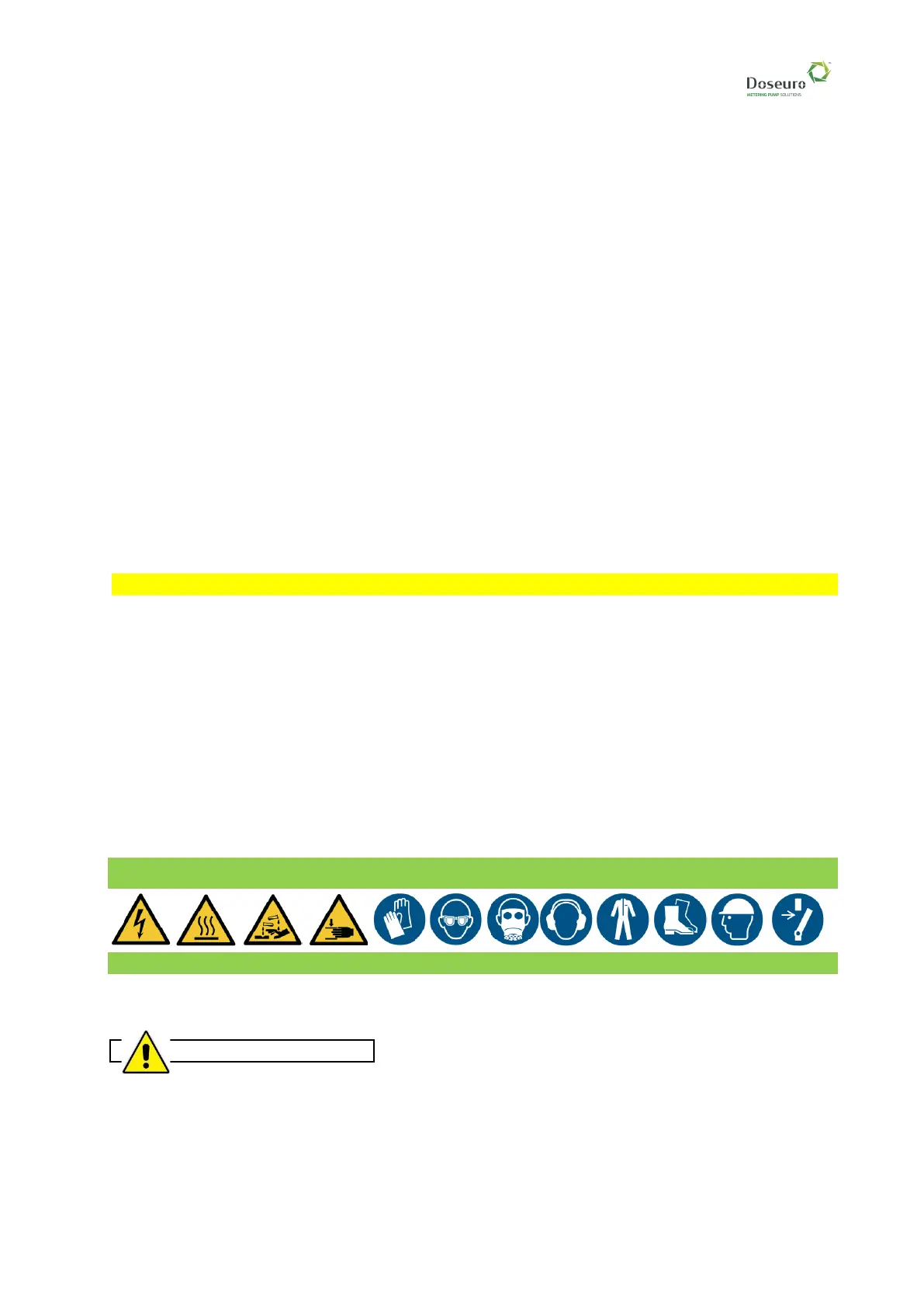 Before intervening on the dosing pump or on the piping, the necessary precautions must be taken so that
