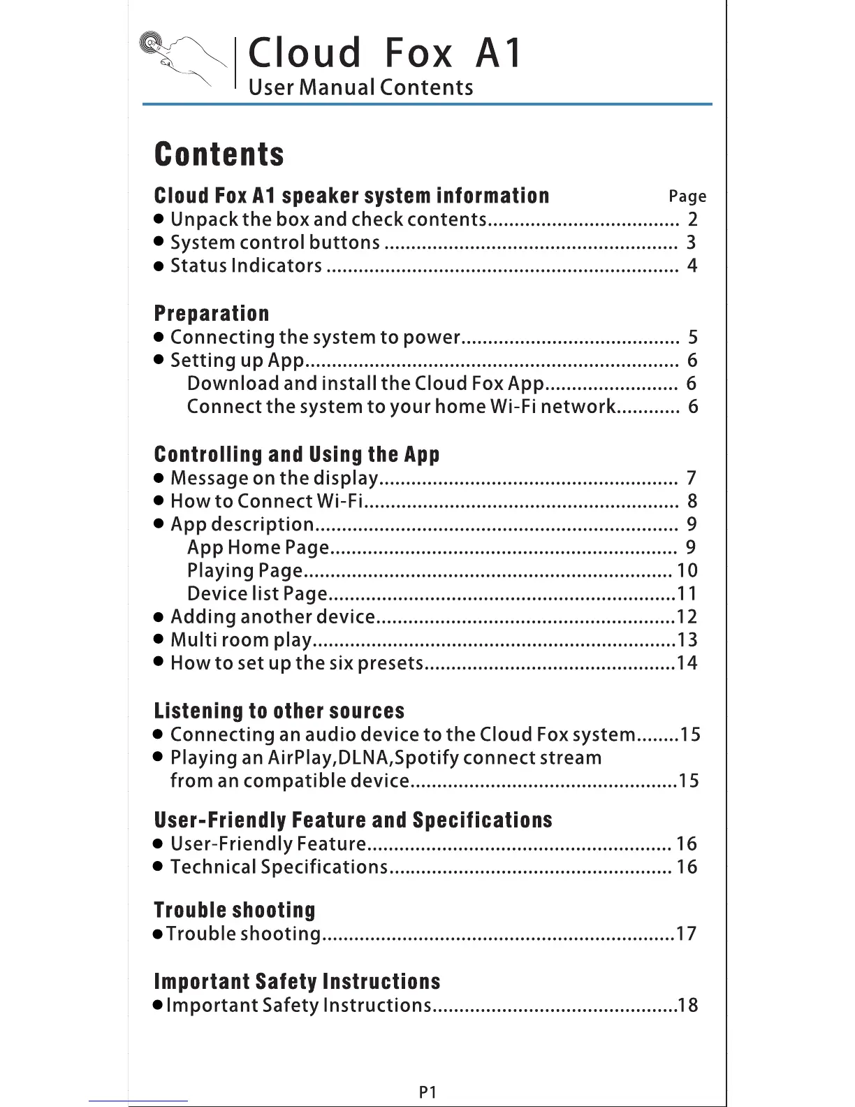Doss Cloud Fox A1 - Contents