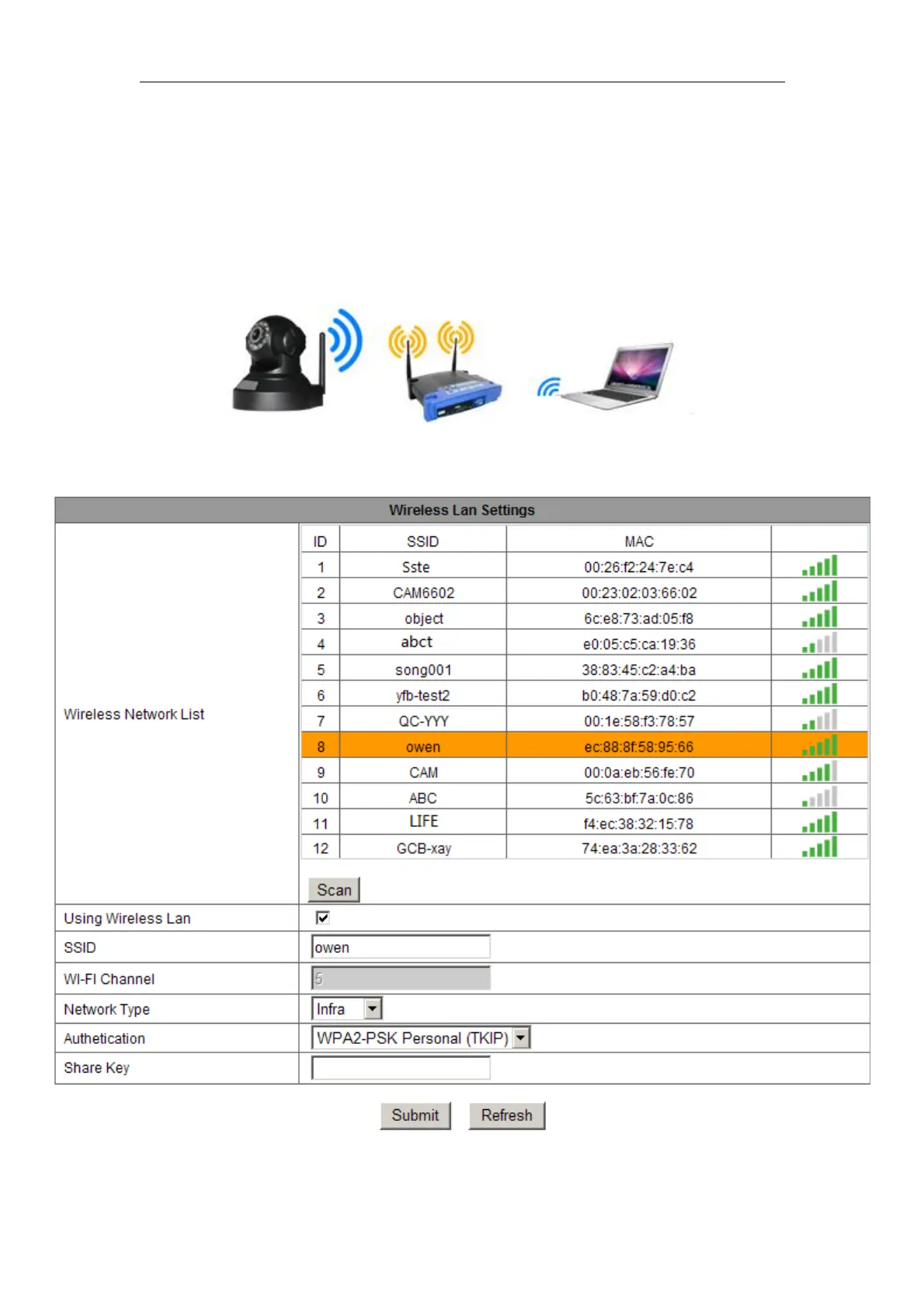 connect them as chapter 2.2 to Login camera and enter wifi setting, and then operate as