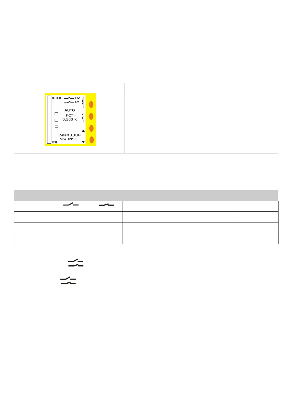 State of Reset : the reset can be set to manual (on the display appears the word MAN) or automatic mode (appears word AUTO). In manual mode, when I∆>I∆n, the word SET