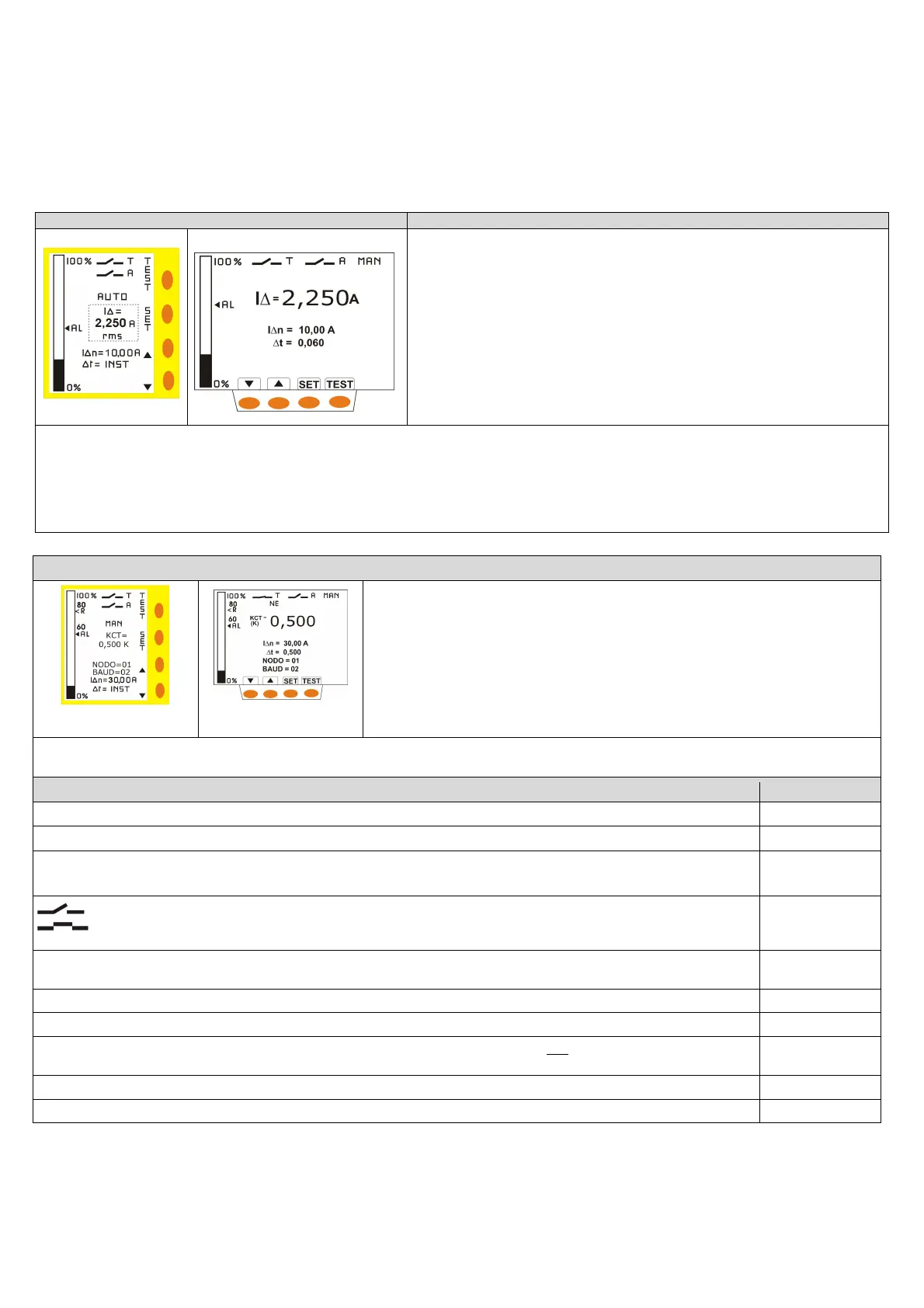 MAN/AUTO: Reset mode: manual or automatic. After a trip for IΔ> IΔn, the written "SET" becomes "RESET" and will therefore allow the