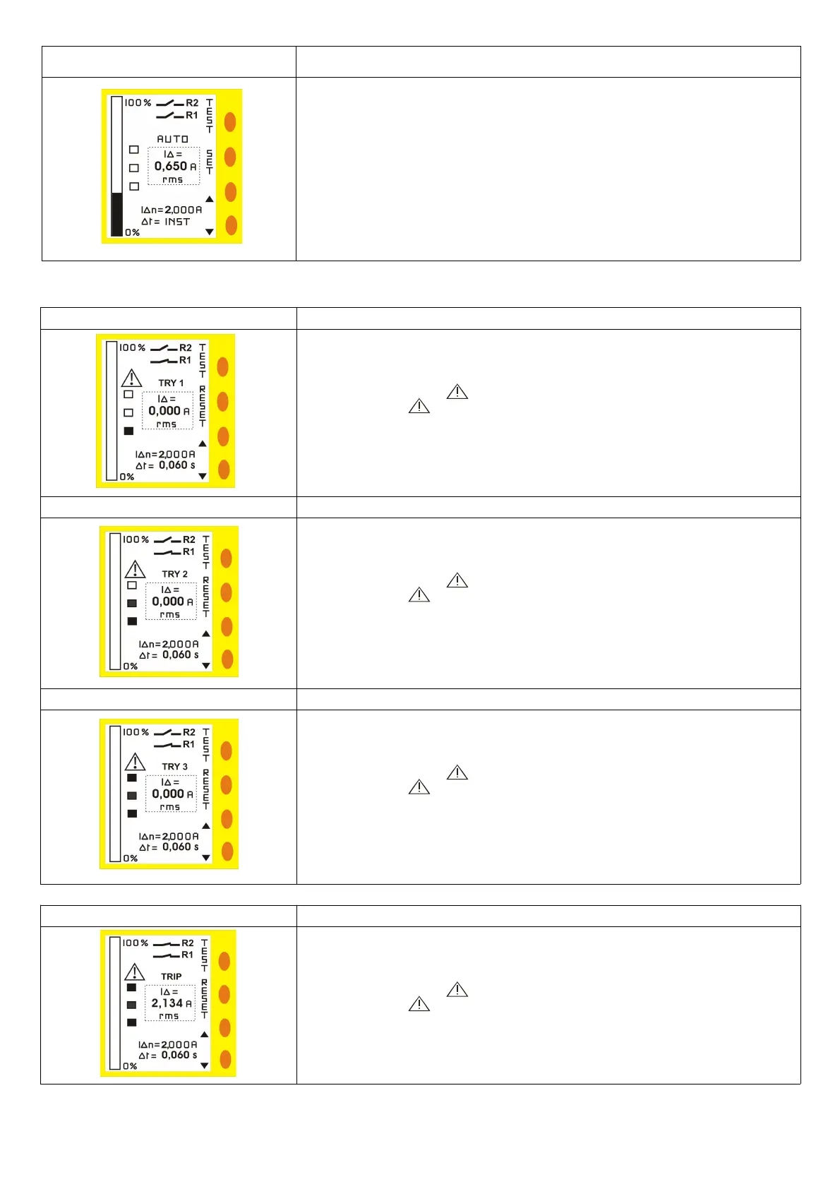 appare la scritta RESET per resettare la condizione di TRIP