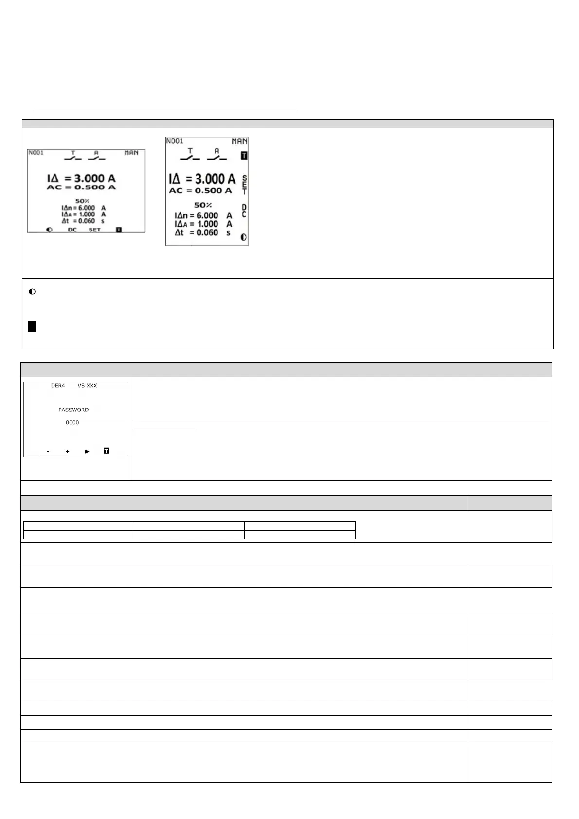 RST MODE= manual or automatic. After a trip for IΔ> IΔn, the message "SET" becomes "RST" and will therefore allow the RESET of the TRIP condition (only if IΔ