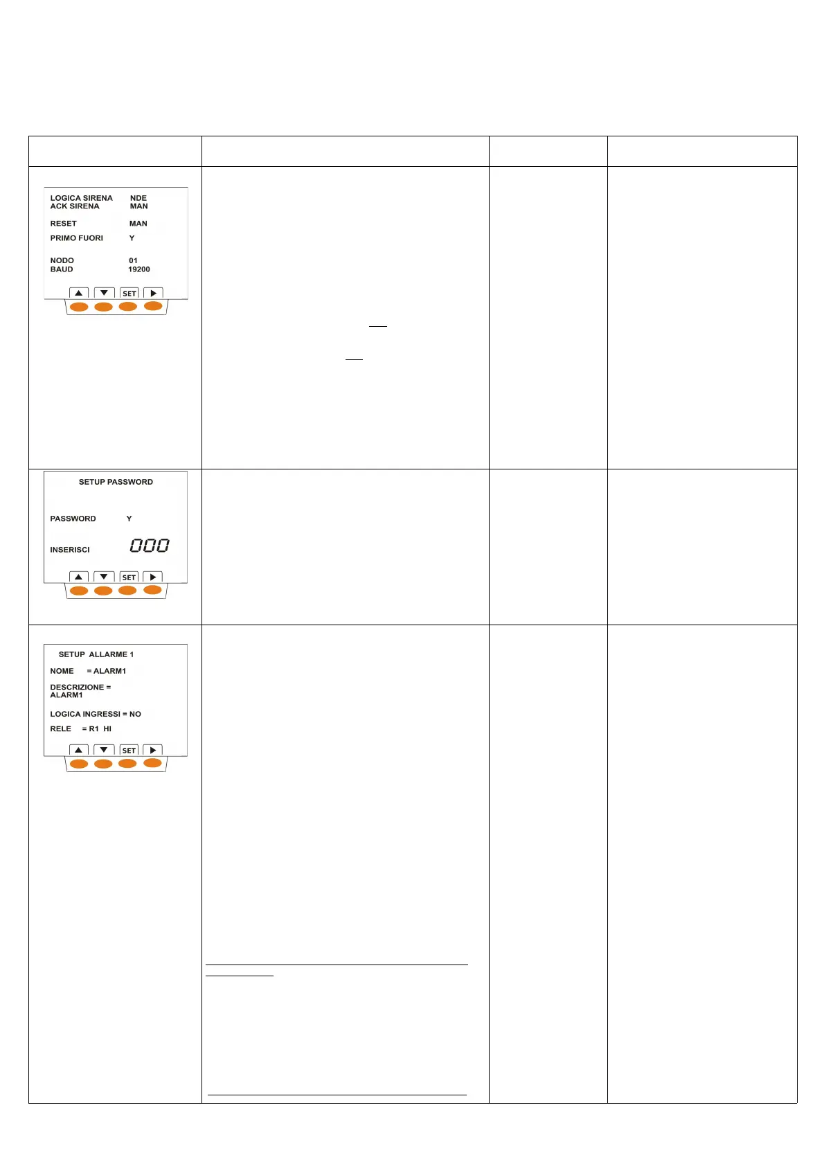 (**) Dopo 3 min di inattività nello stato di SETUP il dispositivo torna in normale stato di funzionamento senza modificare i parametri del SETUP