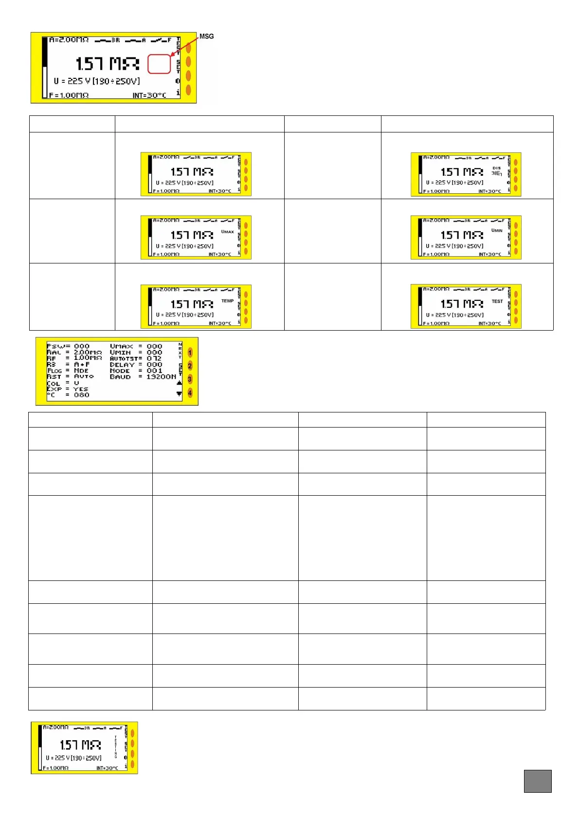 donc le déclenchement des relais Fault (l'écran deviendra jaune). A la fin du TEST, l'instrument revient dans les