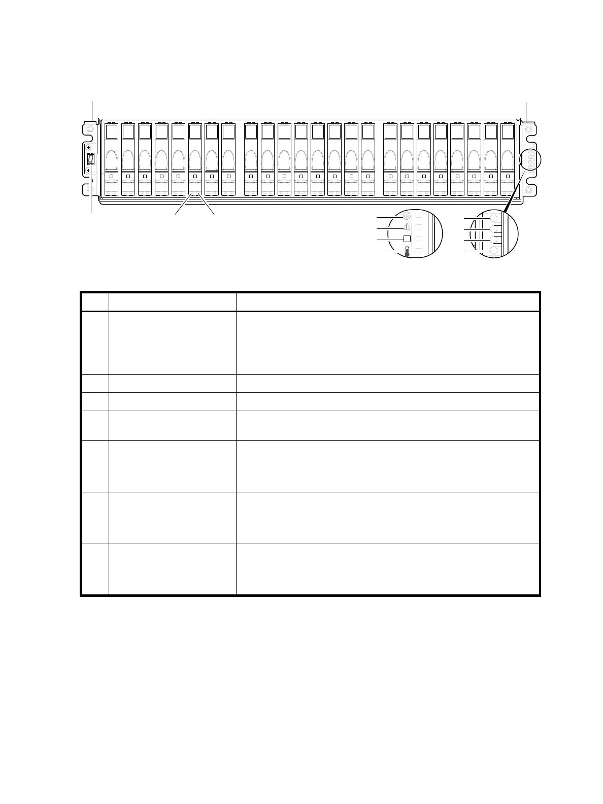 2 Disk drive — Left LED See Disk drive LEDs (2U12/2U24) on page 110.