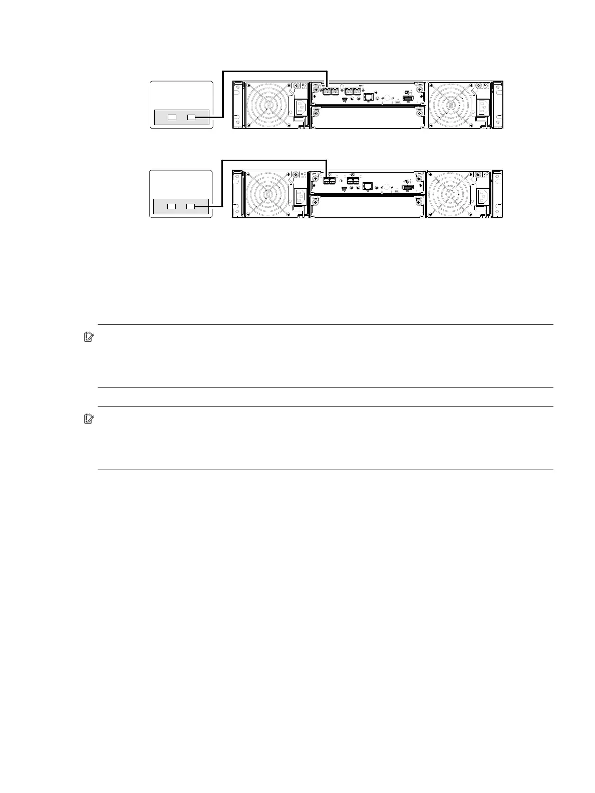 Figure 57 (lower illustration) shows host connection of an HD mini-SAS controller module using standard