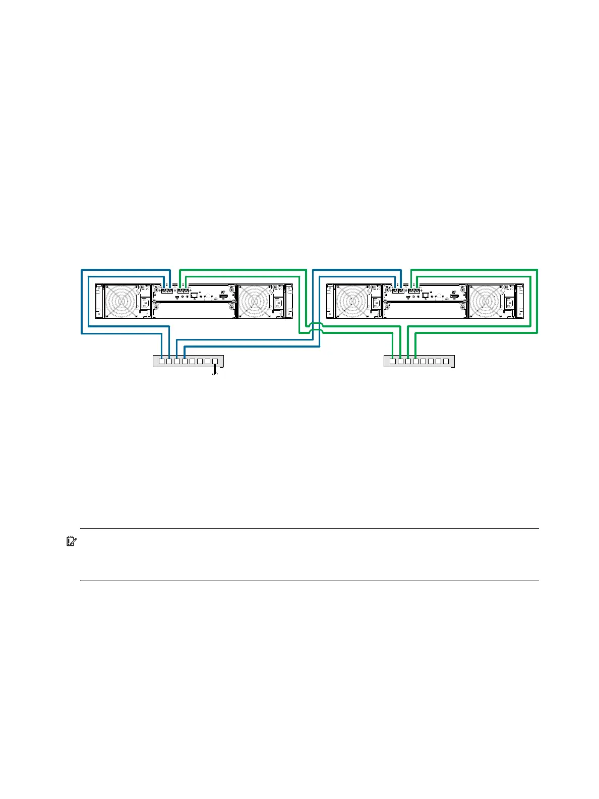 switches, with one CNC replication port from each controller connected to the first switch, and the other