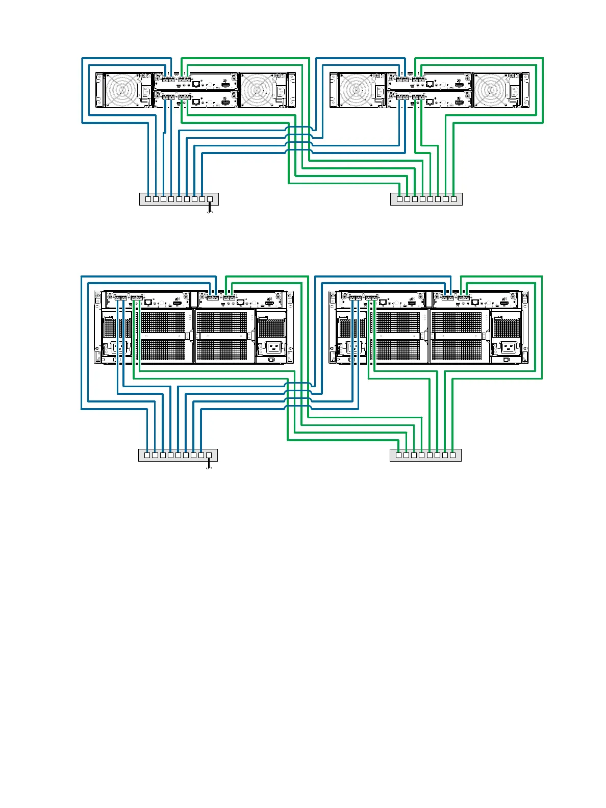 Figure 75 Connecting two storage systems for replication: multiple servers/switches/one location