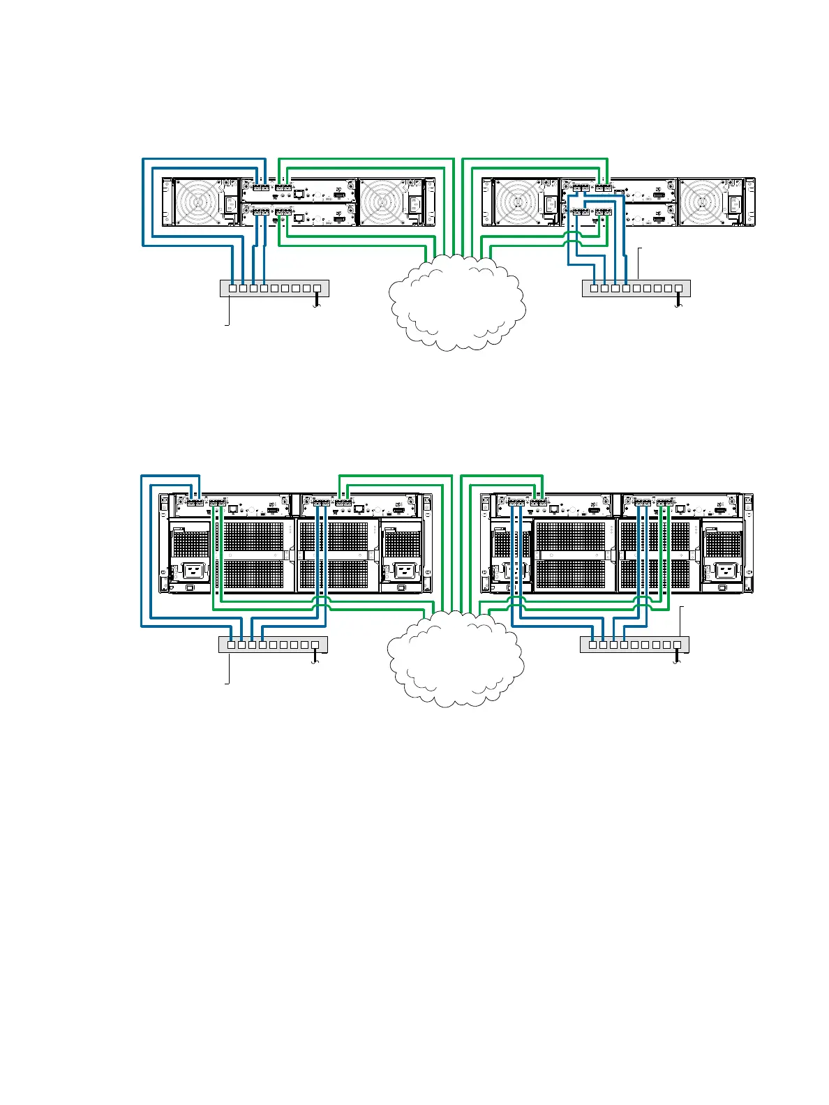 Figure 76 shows the rear panel of two 4824/4834/4844 controller enclosures with I/O and replication