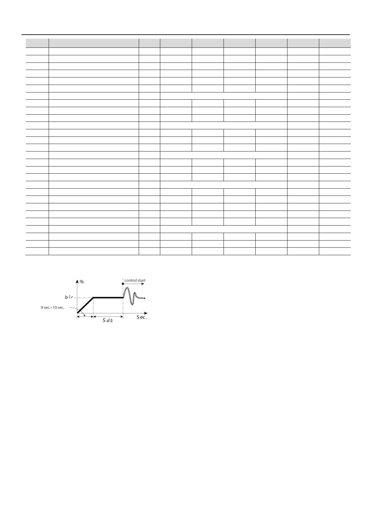 : Setting 1 group table (Menu 1 = 1.PR)