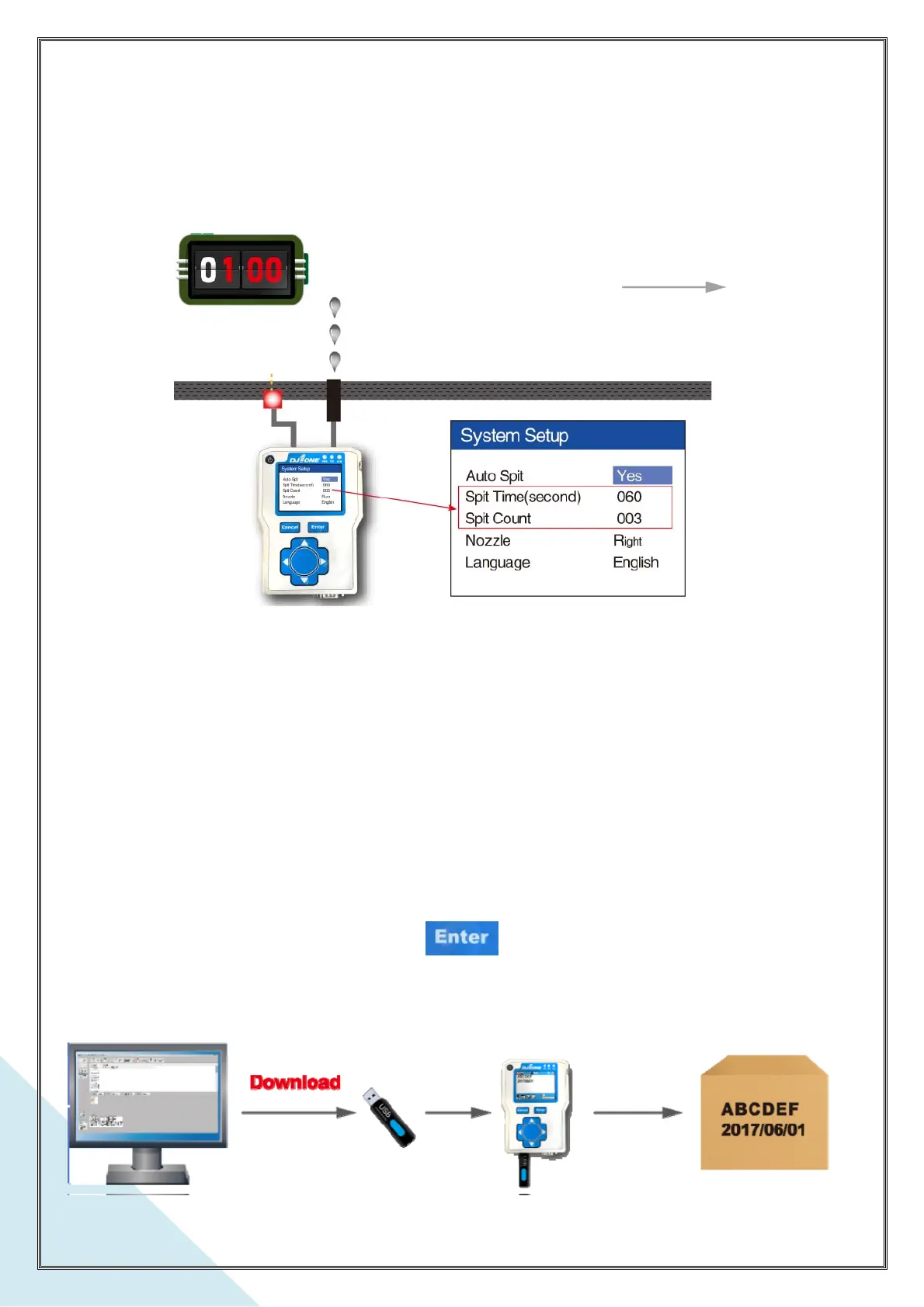 during the print break. It can be set from 000 – 999 droplets(Lines) per spitting.