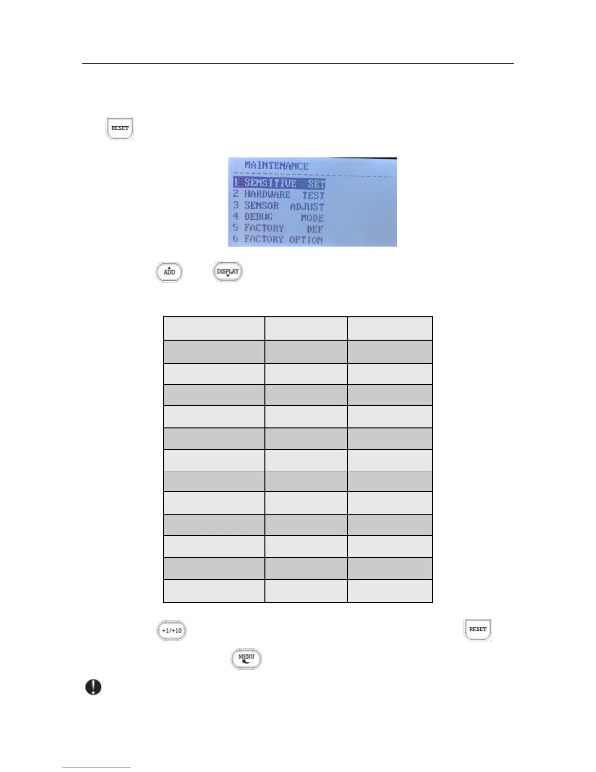 In normal working state, press the CLEAR” key for 5 times to enter maintenance menu, press