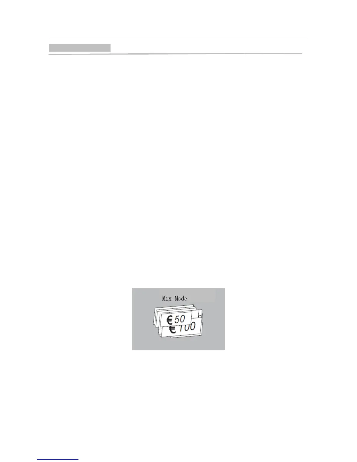In mix mode, "MIX" is displayed on the LCD and the machine can count the mixed banknotes