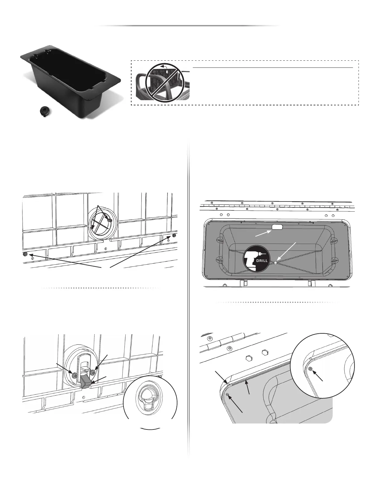 NOTE: The provided drain plug is designed to fit a 13/32” hole.