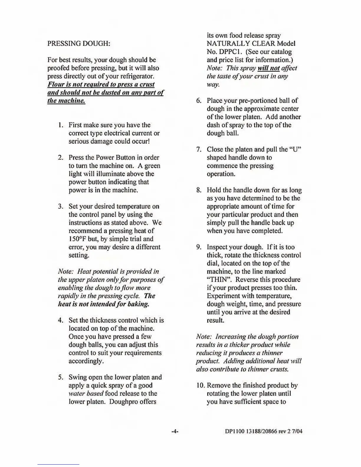 Doughpro DP1100 - Pressing Dough Details; Additional Notes; Temperature Conversion; Counter Functionality